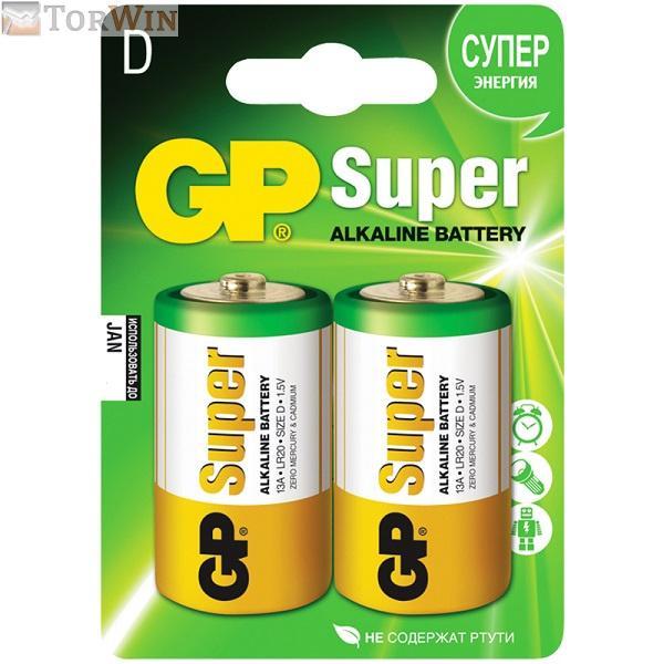 GP LR20-2BL Super alkaline (ЗЕЛЕНЫЙ БЛИСТЕР 1.5V 2500-3200 мАч (20))