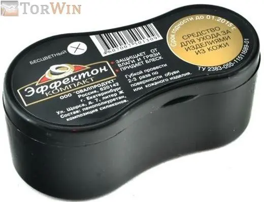 Компакт губка Эффектон быстро удаляет поверхностную грязь, придает естественный блеск, полировка обуви не требуется.