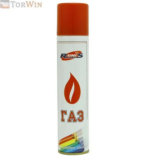 В составе газа Рунис - изобутан, t использования от -10 до +40 C°, объемы баллонов: 140 мл, 270 мл, 400 мл.