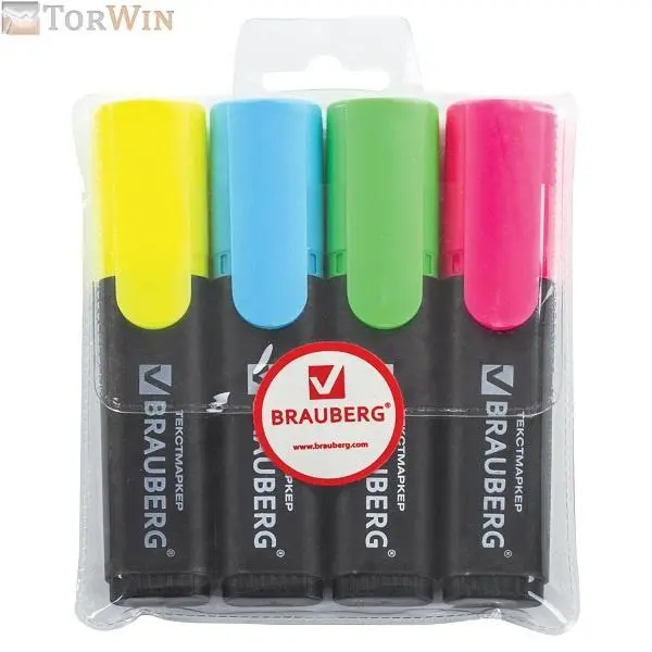 Набор текстовыделителей BRAUBERG 4 шт., АССОРТИ, Contract