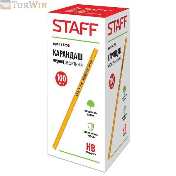 —Карандаш ч/гр STAFF, твердость НВ, пластиковый, корпус ассорти, с резинкой, незаточенный