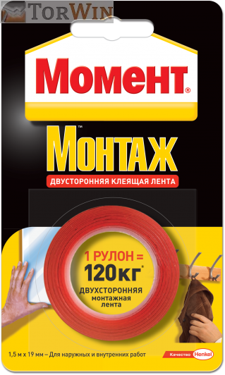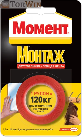 Особо прочная двусторонняя монтажная лента для постоянного крепления. Один рулон, полностью наклеенный на поверхность, выдерживает вес до 80 кг.