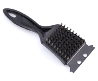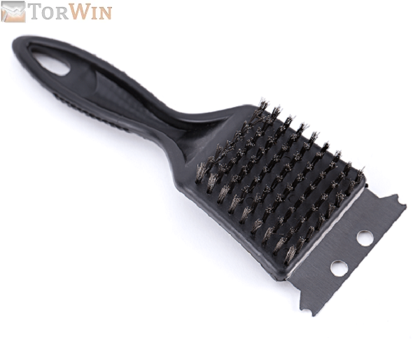 - Состоит из стального скребка с выемками для чистки прутьев и жесткой щетки, для очищения от пригоревшей пищи