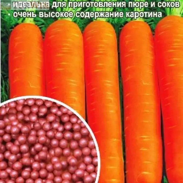 Корнеплод цилиндрический, тупоконечный, ярко-оранжевый, длиной 17-20 см, массой 110-200 г. Мякоть оранжевая, нежная, сочная, сердцевина маленькая.
