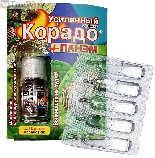 Препарат Корадо предназаначен для уничтожения колорадского жука, картофельной коровки на посадках картофеля, а также для борьбы с тлей на яблоне. Перед применением приготовить рабочий раствор (см. таблицу на упаковке) и опрыскивать растения в сухую, безветренную погоду желательно утром или вечером.