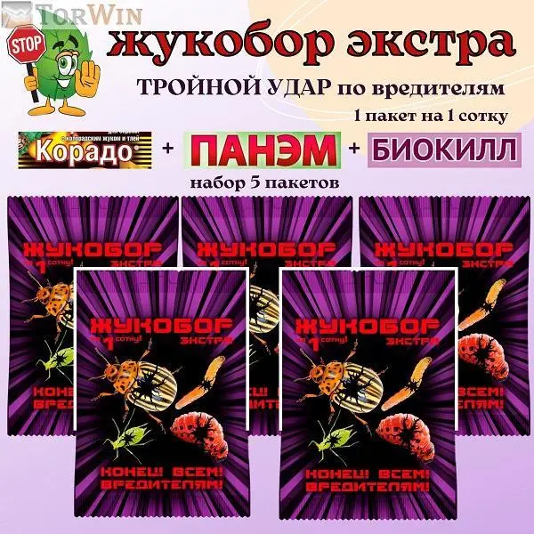 «Жукобор Экстра» комплексного типа: не оставляет шансов даже самым устойчивым популяциям вредителей овощных и садовых культур. В его составе - препарат «Корадо», который обеспечивает гибель взрослых колорадских жуков, а также их личинок разной стадии развития.