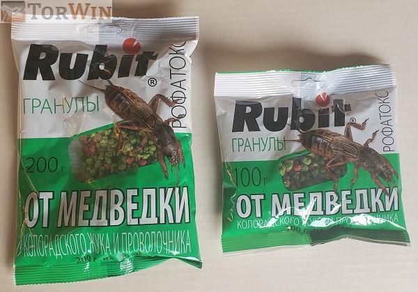 Назначение: Гранулы Рубит от медведки и проволочника применяются населением для уничтожения вредителей на личных подсобных хозяйствах - огород, дача, приусадебный участок.
