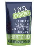 Применение: Препарат 30 плюс применяется для обработки всех видов культурных растений на личных подсобных хозяйствах для защиты от щитовок, ложнощитовок, клещей, тлей, медяницы, молей, червецов, белокрылки, в том числе и яиц вредителей.