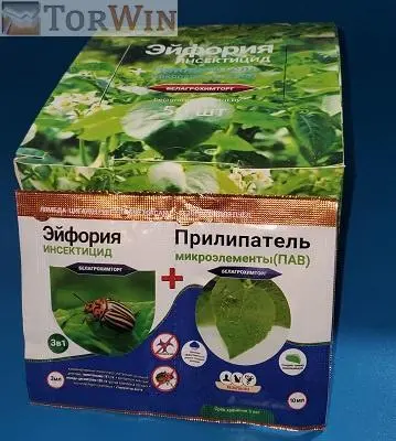 Средство Эйфория разводится по инструкции на 5-10 л воды - для опрыскивания в период вегетации 1-2 соток посадок; на 2-3 л воды - для обработки клубней (20-50 кг) и семян (200 мл на 100 г).