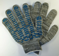 Перчатки х/б серые с ПВХ волна (5 нитей 10 класс уп 10 шт)
