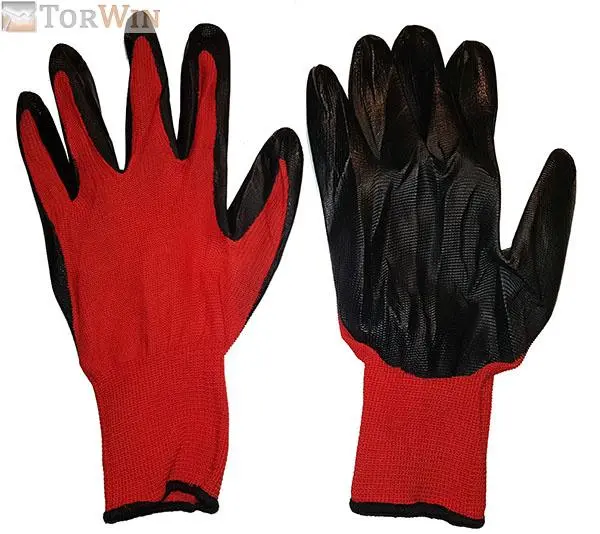 Перчатки красные стрейч с черным покрытием (раз. унив. / упак 12 шт)