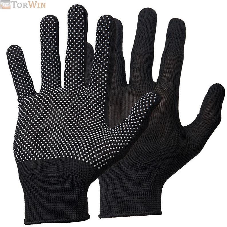 Перчатки нейлоновые черные в точку (уп 12 шт)