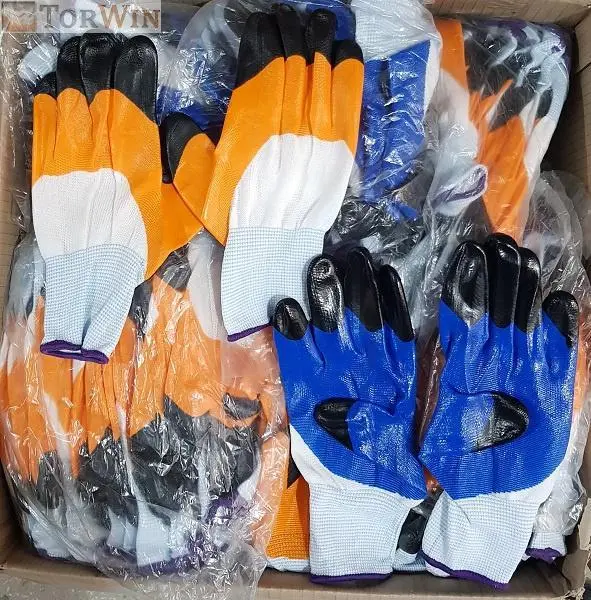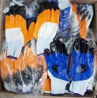 —Перчатки облитые нейлон разноцветные с черными пальцами