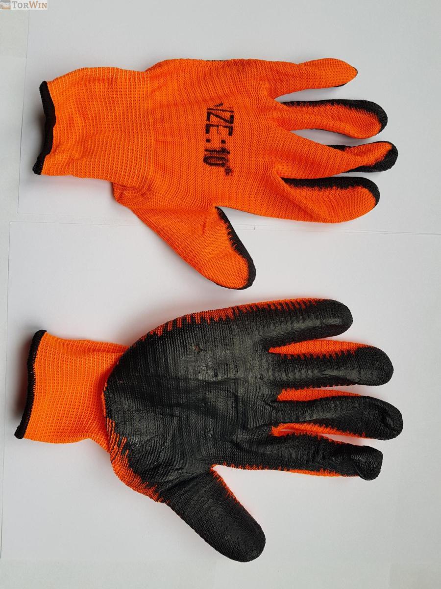 Перчатки стрейч оранжевые ладонь черная (унив размер)