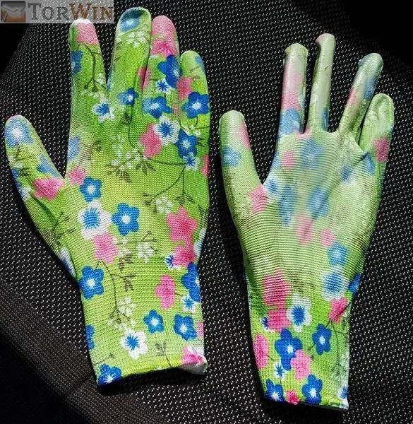 Перчатки стрейч женские цветные полиуритан (ун. раз. Цветочек / в уп 12 шт)
