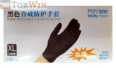 Черные одноразовые синтетические (нитриловые) перчатки, упаковка 100 штук (50 пар), размер L.