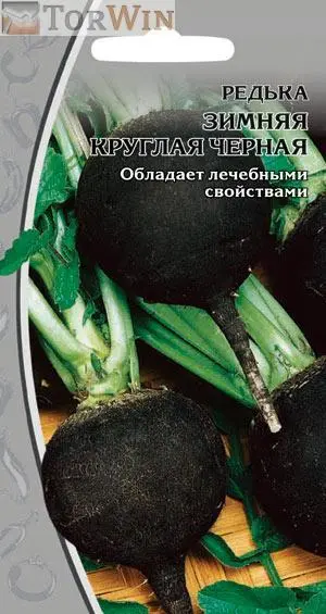 Корнеплод округлой формы с черной гладкой поверхностью массой 250–500 г. Мякоть белая, сочная, приятного остро-сладкого вкуса.
