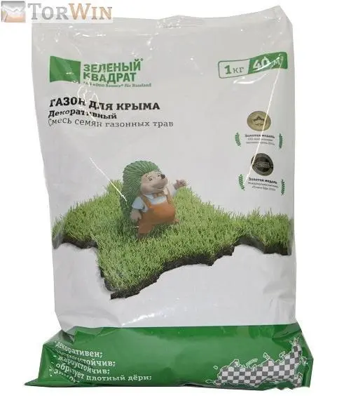 Преимущества: Газон Зеленый квадрат Декоративный для Крыма имеет декоративное и игровое назначение; обладает быстрой всхожестью; идеален для солнечных и засушливых мест; применим в южных регионах России и Крыму.