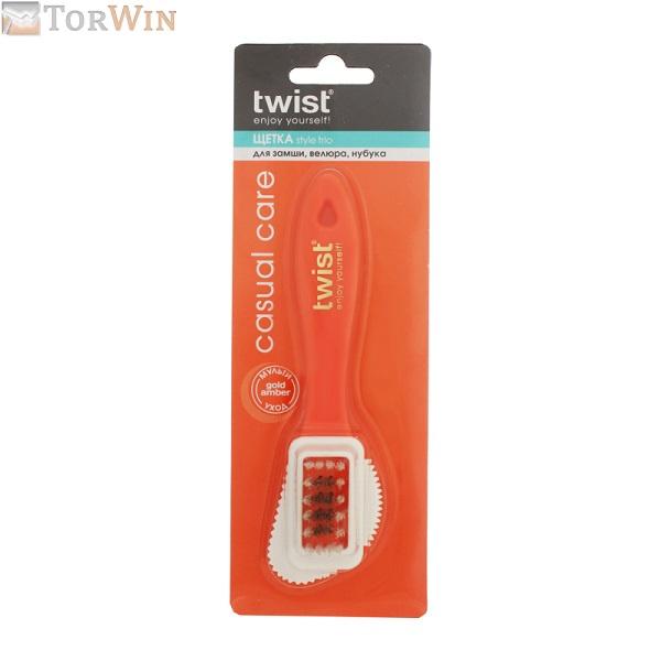 Щетка Твист с тремя очищающими поверхностями: - щетина усиленная латунной вставкой для очистки сухих загрязнений; - боковые выступы для очистки швов, рантов и других труднодоступных мест; - резиновая рельефная поверхность деликатно восстанавливает бархатистость.