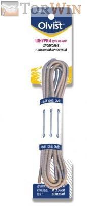Круглые тонкие бежевые шнурки Olvist Beige выпускаются длиной 60 см (на 4 отверстия), отлично подойдут для классической и повседневной обуви соответствующего цвета.