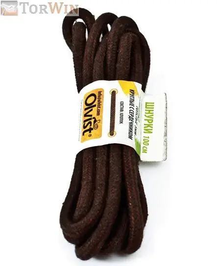 Круглые толстые коричневые шнурки Olvist выпускаются длиной 100 см (на 6-7 отверстий), отлично подходят для спортивной, туристической, военной обуви соответствующего цвета.