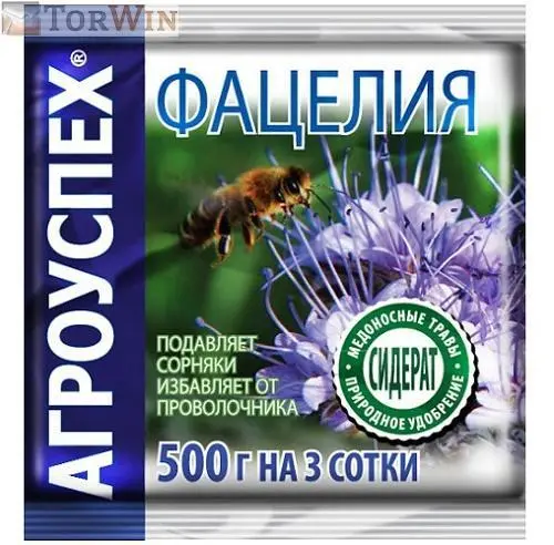 Свойства: Фацелия за короткое время успевает образовать густую зеленую массу, за 40-45 дней набирает 200-300 кг зеленой массы на сотку, что равноценно внесению туда 300 кг навоза; обогащает почву органикой, легкоусвояемыми минеральными соединениями и микроэлементами, прекрасно разрыхляет, структурирует землю; защищает почву от промерзания, удерживает влагу; подавляет сорняки, предупреждает появление вирусных и грибковых заболеваний; эффективна в борьбе с проволочником, от соседства с фацелией гибнет саранча, почвенные нематоды.