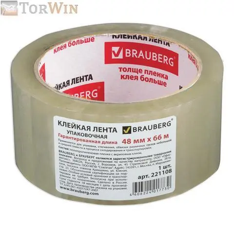 Клейкая лента Brauberg упаковочная прозрачная 48мм х 66м (45 мкм / арт. 221108)