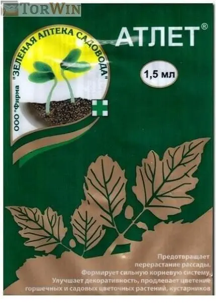 Действие: ЗАС Атлет замедляет рост растений в высоту; формирует атлетические растения с толстыми стеблями, темно-зелеными листьями и мощными корнями; растения получают «забег в развитии», раньше переходят к цветению и плодоношению.