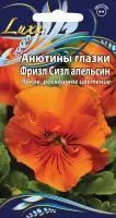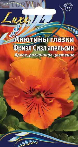 Цветы диаметром 6–8 см, ярко-оранжевые с черными «ресничками» в центре и гофрированными краями.