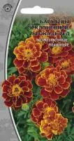 Соцветия махровые, крупные, диаметром 3-4 см, насыщенного красно-коричневого цвета. Обильно цветет с июня по сентябрь, долго сохраняет свежесть в срезанном виде.
