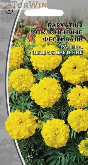 Соцветия очаровательные, махровые, желтого цвета, диаметром 5 см.