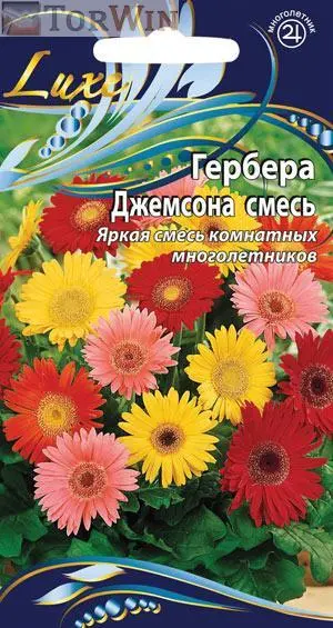 Листья перисто-надрезанные длиной 15–20 см, соцветия - корзинки с желтыми, оранжевыми, красными, розовыми и белыми краевыми цветками вокруг желтой серединки, диаметром 10–12 см, располагаются на длинных цветоносах.
