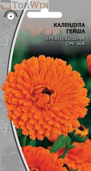 Соцветия диаметром 10 см, густомахровые, красновато-оранжевого цвета.
