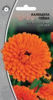 Соцветия диаметром 10 см, густомахровые, красновато-оранжевого цвета.