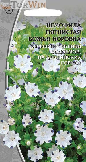 Стебли сильноветвящиеся, полустелющиеся, опушенные. Цветки белоснежные с ярким синим пятном на конце каждого лепестка, диаметром 3–5 см.