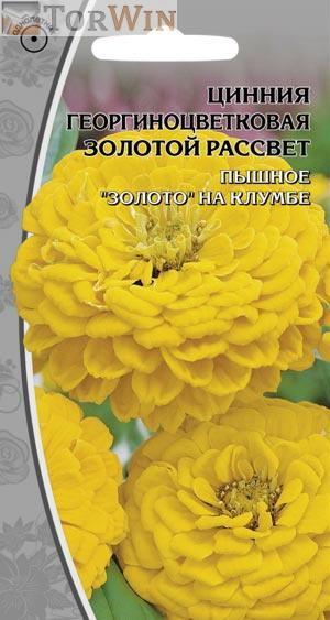 Соцветия внешне похожи на георгину, махровые, крупные, диаметром до 14-16 см, золотисто-желтого цвета. Цветет обильно с июля по сентябрь, предпочитая хорошо освещенные солнцем места.