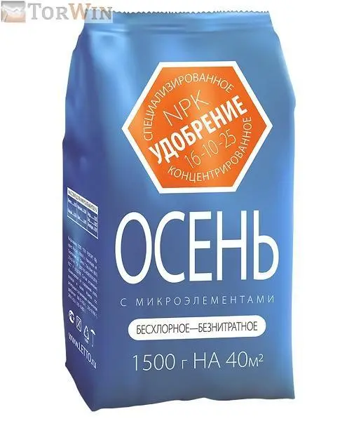 Свойства: Удобрение осень создает хороший фосфорно-калийный фон в почве при посадке садовых и огородны с культур будущей весной; способствует разложению в почве органических остатков растений; не вызывает интенсивного роста вегетативной массы и способствует хорошей перезимовке растений.