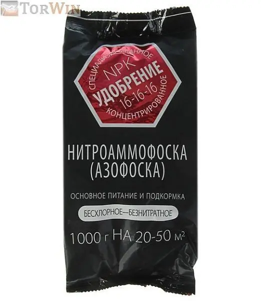 Удобрение Нитроаммофоска (Азофоска) позволяет за один прием производить подкормку сразу тремя питательными элементами, что очень экономично; обеспечивает значительную прибавку урожая и предохраняет почву от внесения лишних удобрений, которые могут нарушить процесс вегетации растений.