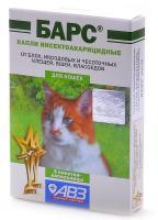 Дозы и порядок применения: Капли Барс предназначены для обработки кошек с 10-недельного возраста и массой от 3-х до 8 кг. Однократная обработка путем капельного нанесения на сухую неповрежденную кожу в области спины по линии позвоночника: на голову (между ушами), шею и между лопатками (см. подробнее в инструкции). Повторная обработка - по показаниям.