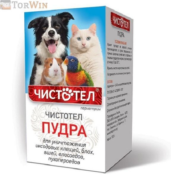 Пудру Чистотел применяют для уничтожения иксодовых клещей, блох, вшей, власоедов, паразитирующих на собаках и кошках, морских свинках, крысах и других декоративных грызунах, а также пухопероедов декоративных птиц.
