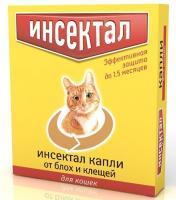 Действие: Продолжительность защитного действия капель Инсектал после однократной обработки сохраняется: против клещей - у собак до 30 дней, у кошек - до 21 дня; против насекомых - у собак - до 2-х месяцев, у кошек — до 1,5 месяцев.